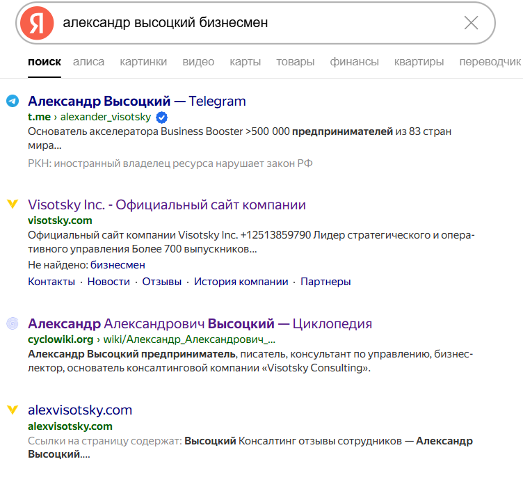 - Высоцкий строит из себя эксперта, но на самом деле является обычным проходимцем без всякого опыта в бизнесе и профильного образования.