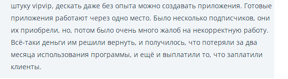 Другой клиент жалуется на потерю средств из-за сотрудничества с Axioma Life. С его слов, менеджеры компании прекрасно умеют уговаривать клиентов инвестировать деньги. Вот только реальной прибыли это не приносит.Встречаются негативные комментарии и о Бизнес Процесс Технолоджис – так раньше называлась Аксиома Лайф. Например, в них жалуются на низкое качество приложения VIPVIP, от которого нет реальной пользы: