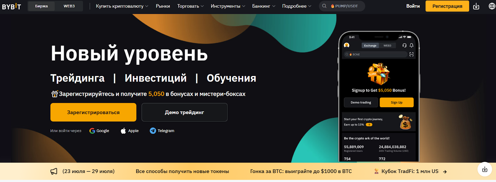 - мгновенные переводы между биржевым и ВЕБ3 кошельком;