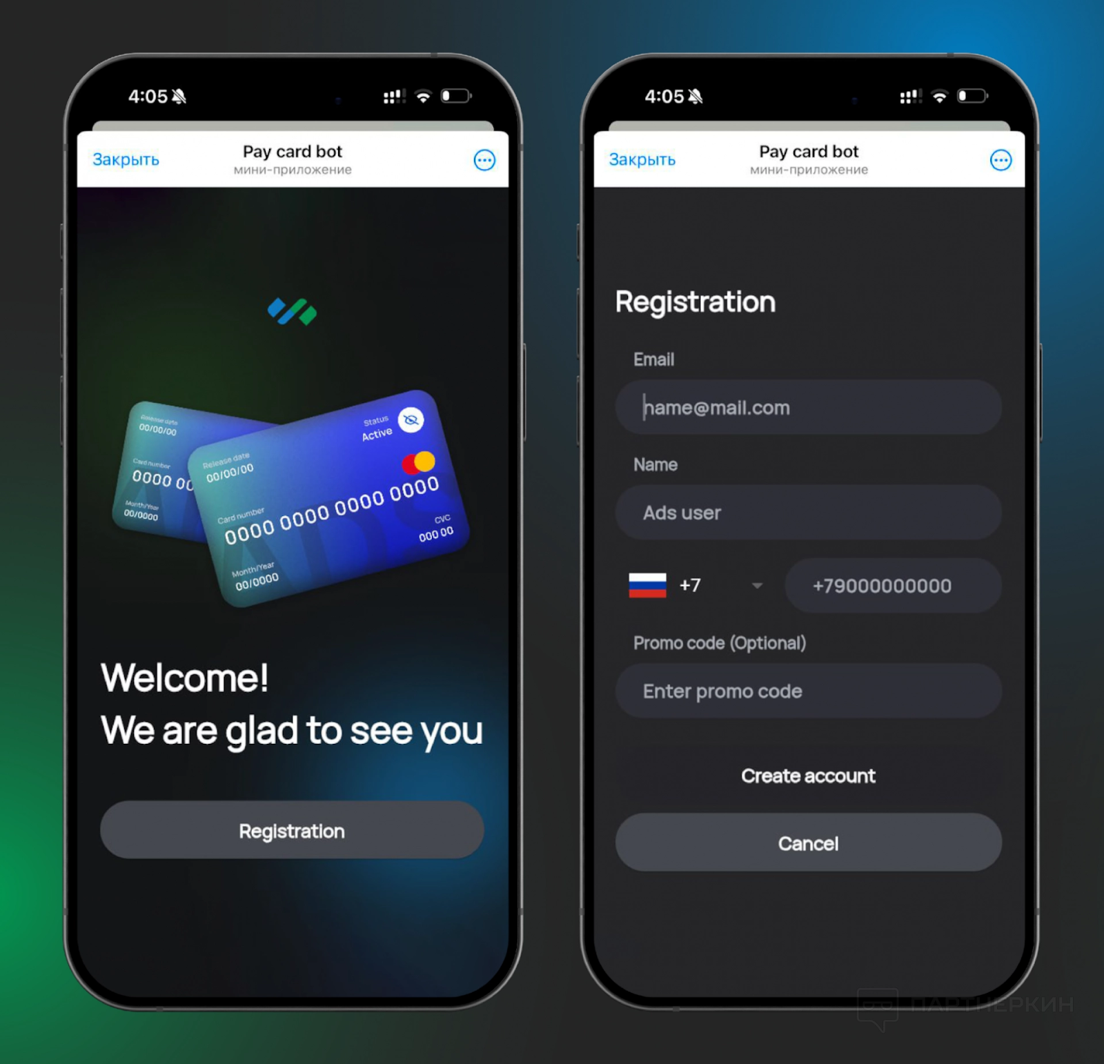 • Ввести электронную почту и номер телефона для регистрации;