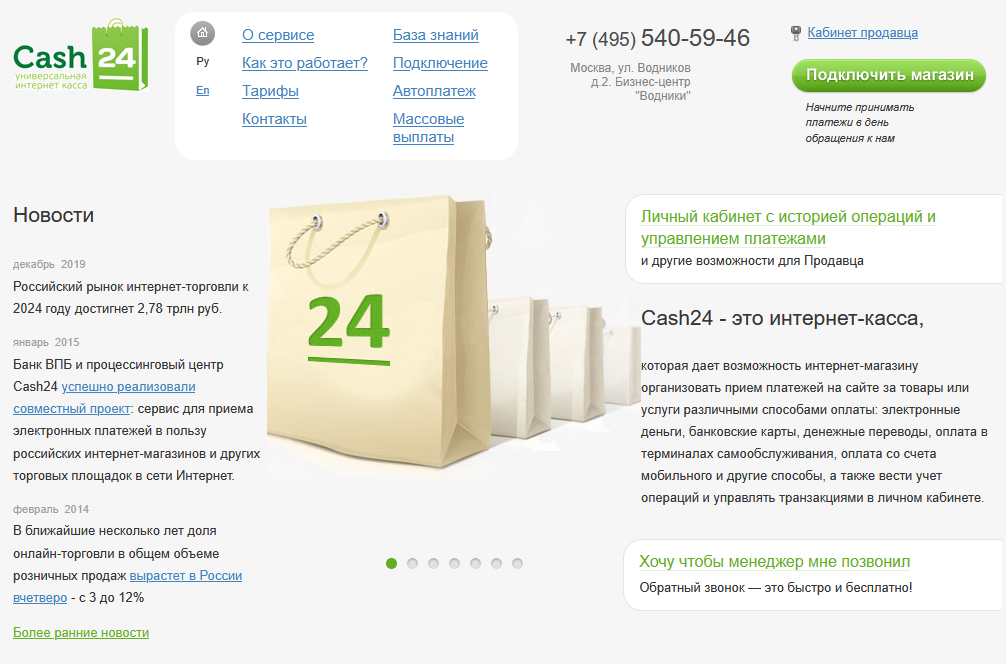 Из описания предполагается, что «Кеш24» подходит для любых коммерческих решений, подразумевающих прием платежей в интернете. Клиенты и партнеры смогут платить обычными картами, в терминалах и банкоматах, балансами телефонов, электронных кошельков и даже наличными в точках партнеров в офлайне.