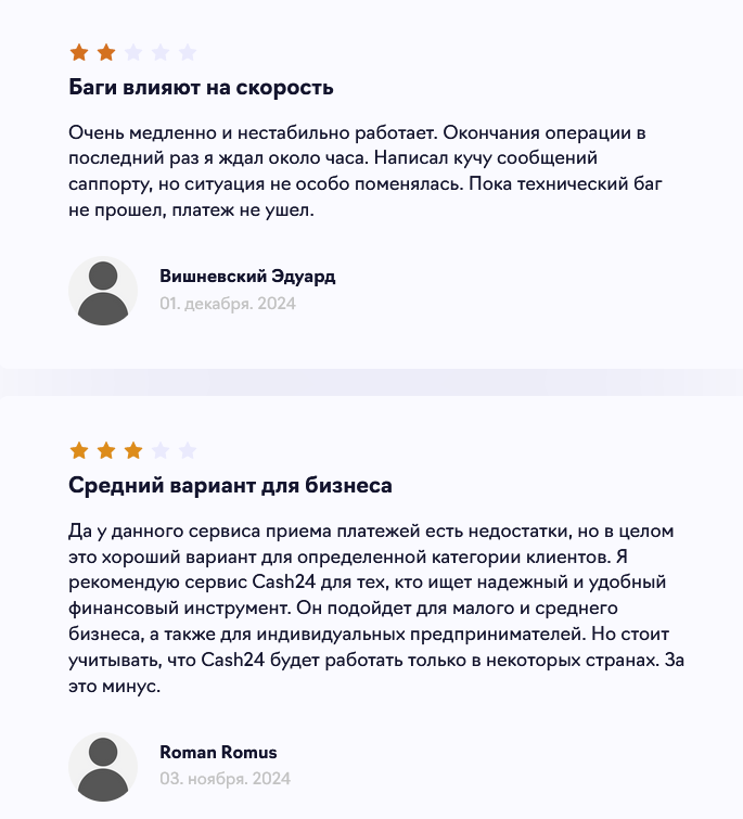В сторонних источниках предприниматели, которые уже воспользовались услугами платформы, делятся независимыми отзывами о Cash24. Мнения разделились: