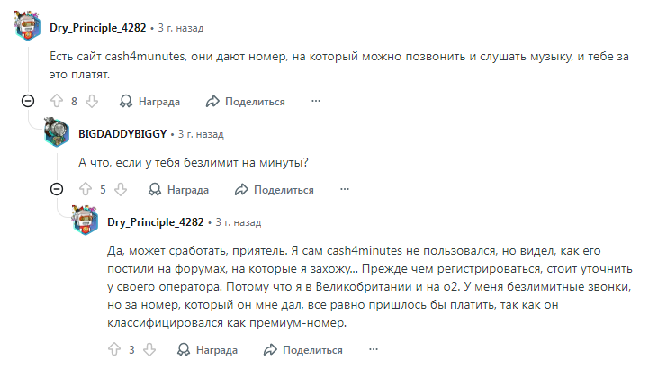 Некоторые пользователи делятся опытом в комментариях. Один человек писал, что действительно звонил по указанному номеру и слушал музыку за деньги. Другой уточнил важную деталь: даже с безлимитным тарифом звонки на премиум-номера часто оплачиваются отдельно.