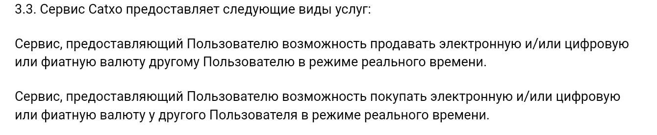 На сайте написано, что catxo.com позволяет одним пользователям продавать или покупать криптовалюту у других. То есть, сервис работает как P2P-обменник, потому что переводы производятся вручную, а ссылок для подключения кошелька нет. Причем средства пользователей не замораживают, как обычно происходит на подобных площадках, а это может привести к потере активов или фиатных денег.
