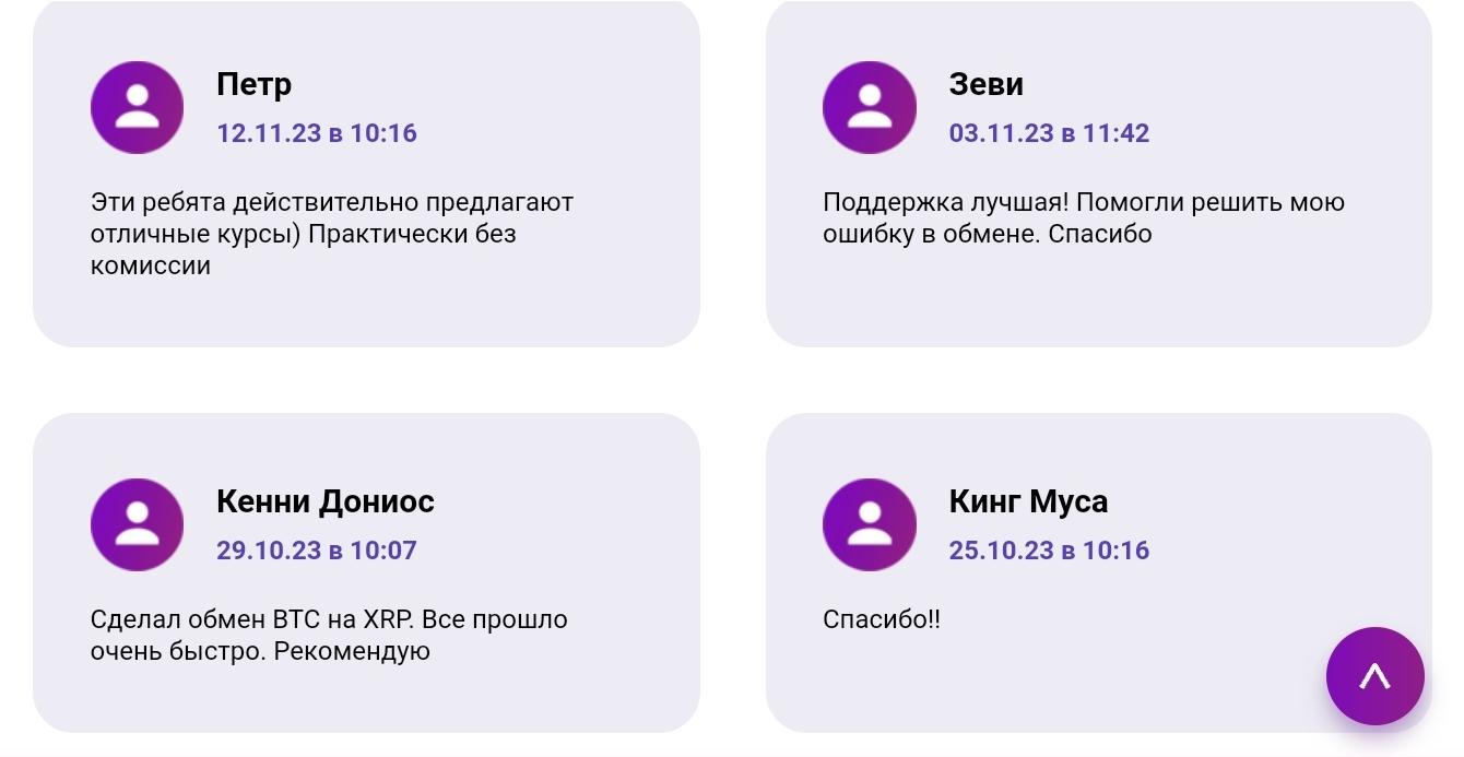 18 положительных отзывов выложено на сайте биржи. Довольные клиенты говорят, что здесь хороший курс, комиссий практически нет, а поддержка всегда помогает. Все комментарии оставлены в 2023 году, а этого не может быть, потому что в то время сайта не существовало. Соответственно, такие отзывы не стоит считать достоверными.