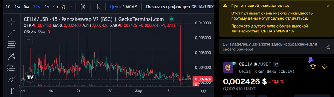 Мы проанализировали доступные данные о рассматриваемой криптовалюте. На основе этого пришли к выводу, что Celia – скам. Об этом говорят следующие факторы: