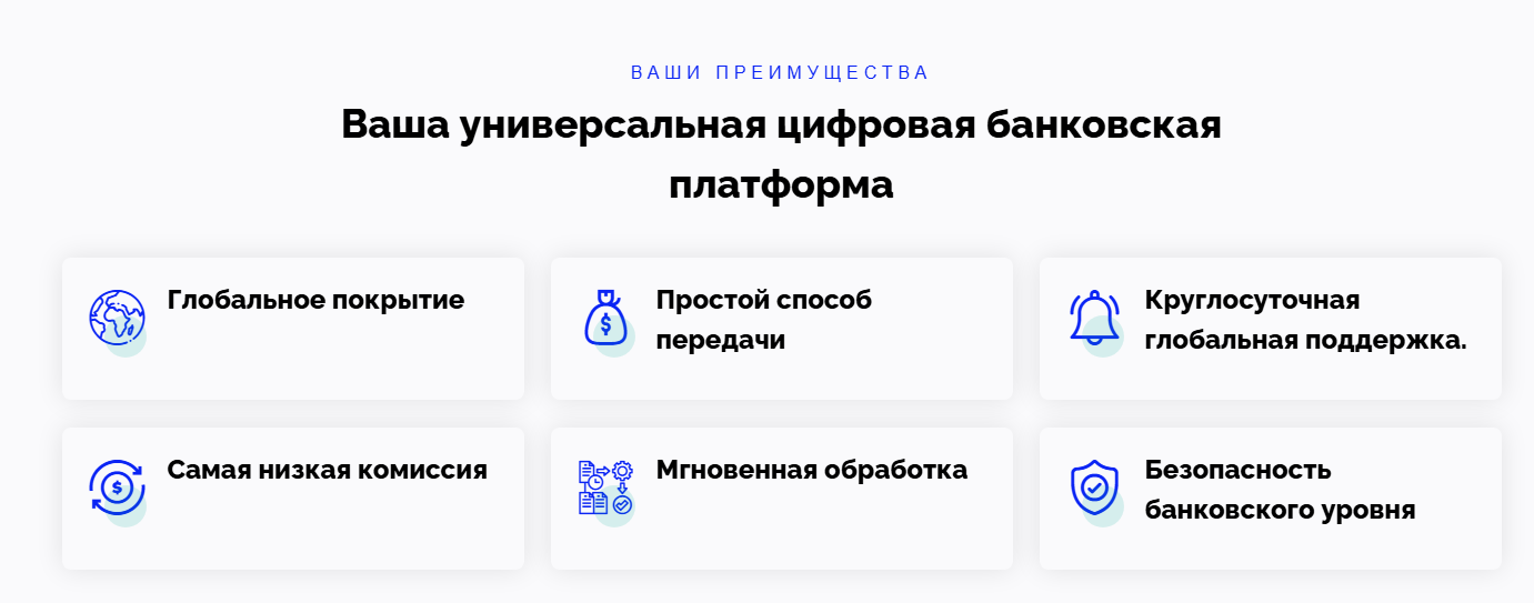 Мы не нашли никакой информации о команде и руководителях проекта. Также о конторе нет данных на авторитетных порталах типа Trustpilot, компания не ведет социальные сети. Все это странно для крупного онлайн-банкинга. Обычно такие фирмы стараются максимально широко заявить о себе, сообщают о новостях, акциях и тарифах.