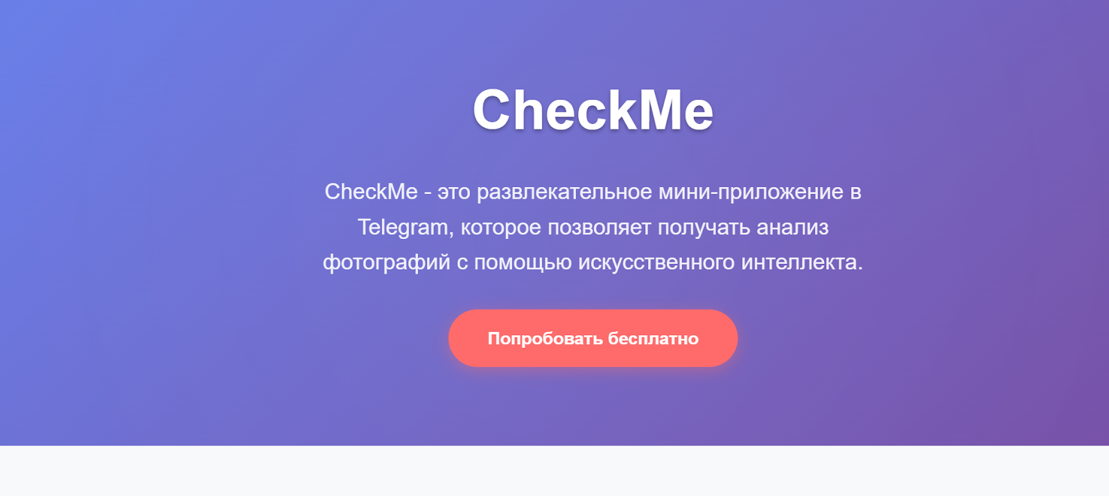 Для продвижения мини-приложения разработчики представили сайт Check Me Pro. Он представлен в виде одностраничника и открывает базовую информацию о боте. Потенциальным клиентам предлагают попробовать возможности ПО бесплатно путем прохождения нескольких шагов: