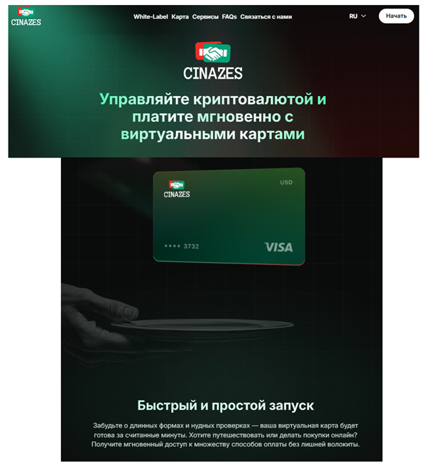 Мы не рекомендуем услуги данного сервиса, поскольку не убедились в его безопасности из-за наличия негативных отзывов о Cinazes Card.