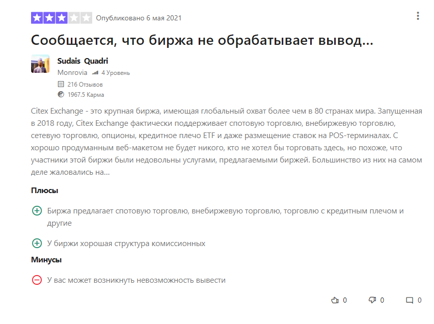 Отзывы о бирже Citex