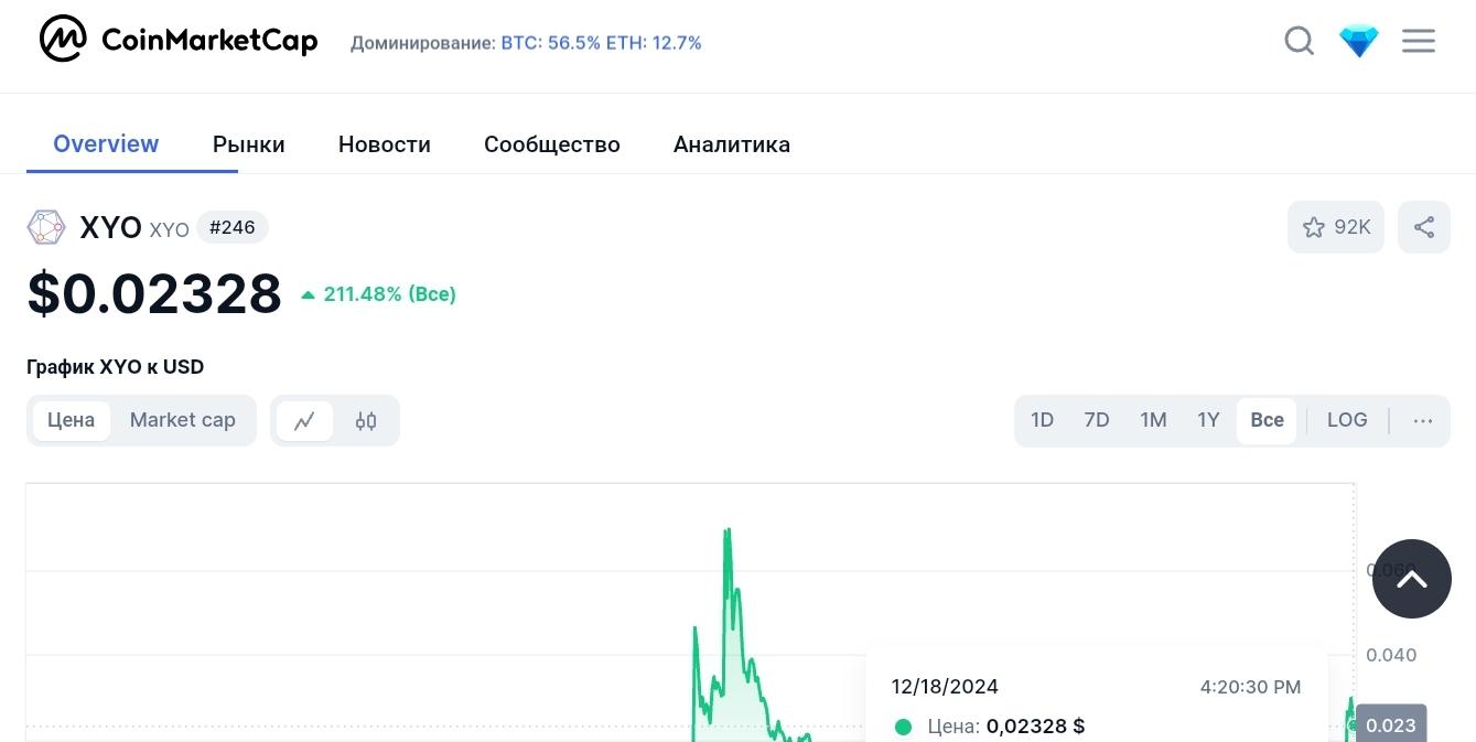 По информации с CoinMarketCap XYO торгуется с 2018 года. Сейчас средняя цена одной монеты — 0,02 доллара, а рыночная капитализация превышает 300 миллионов долларов. Компании принадлежат сайты xylabs.com и xyo.network.