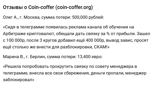 Отзывы пользователей о платежном сервисе Coin Coffer Org