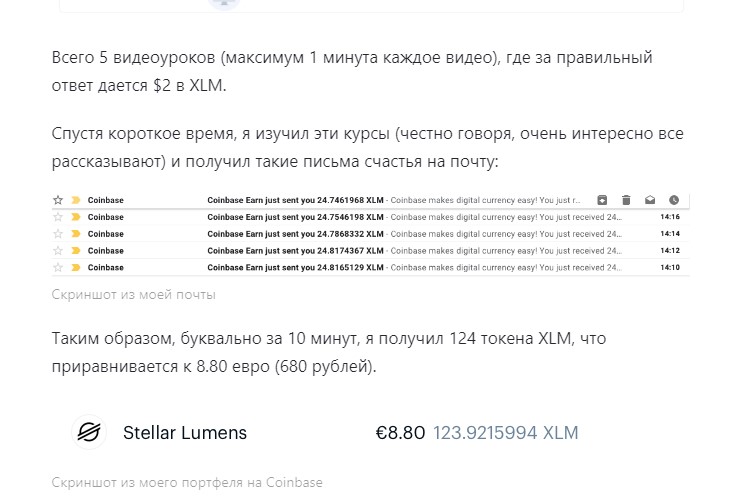 Можно было легко получить токены, но, по сути, их ценность невелика. Coinbase выплачивали вознаграждения.