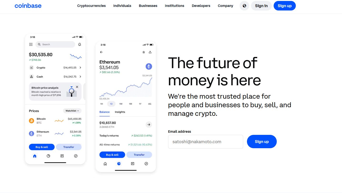 - Зарегистрироваться на Coinbase com.