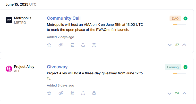 Календарь криптовалют Коиндар
