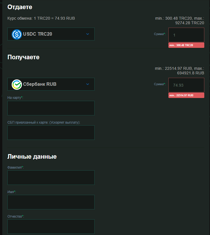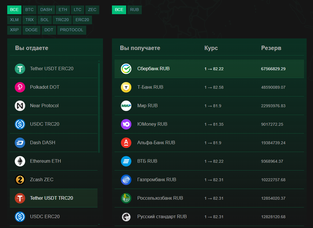 Для обмена на выбор доступны все основные монеты: каких-то не особо известных мемкоинов нет, однако USDT, ETH, LTC и другие можно свободно обменивать. Наиболее подозрительным в процессе является то, что транзакции проходят только в одном направлении: из крипты в фиат, но не наоборот. Надежные и лицензированные ресурсы без проблем принимают деньги в рублях. Мошенники же как раз избегают операций в фиате, поскольку по ним их проще отследить.