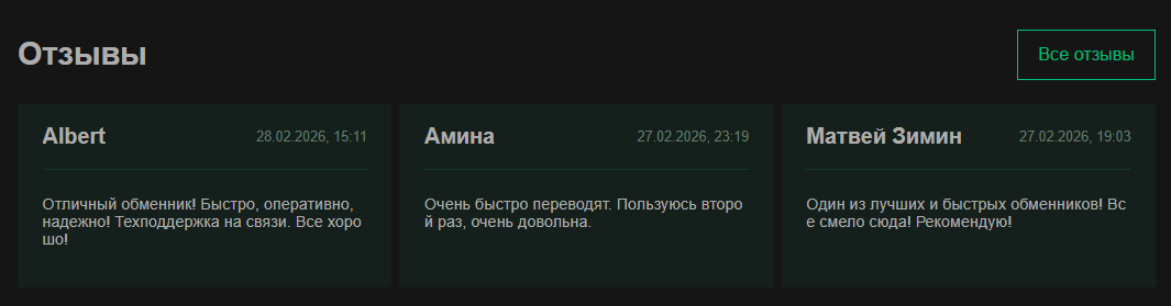 Наибольшие же подозрения связаны с размещением обменника на мониторингах, которые даже перечислены на сайте. На деле это ложная информация при переходе на данные агрегаторы открывается их главная страница, а карточки рассматриваемого сервиса на них нет.