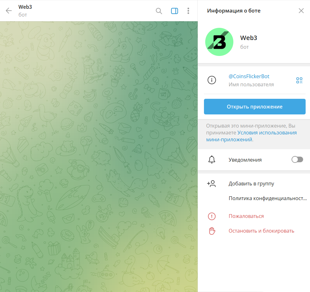Деятельность ботов в Телеграмм Coins Flicker Bot