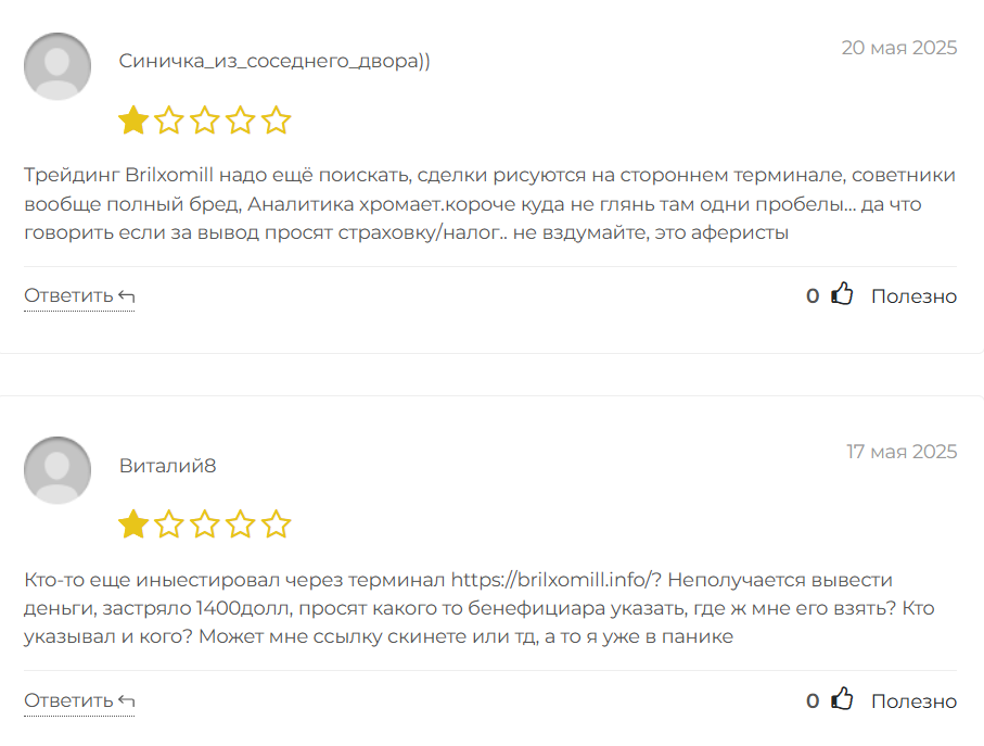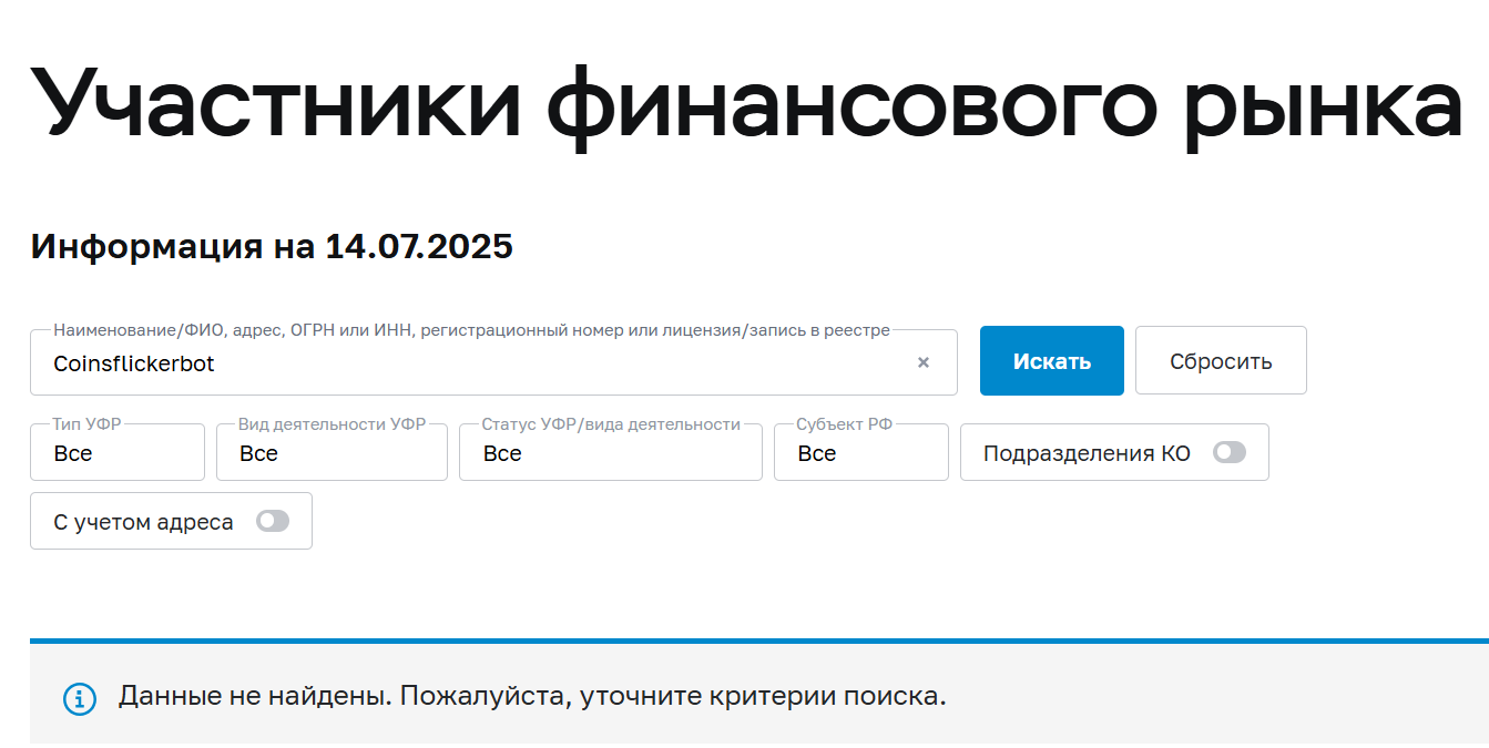 Во-вторых, юридический адрес, который использовала платформа Coinsflickerbot и Brilxomil, уже не раз уже упоминался на разных порталах. Все они были признаны мошенническими и прекратили свое существование.
