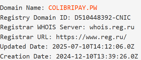 Домен «Колибри Пэй» создан в конце 2024 года. Его возраст слишком мал, чтобы внушать доверие.