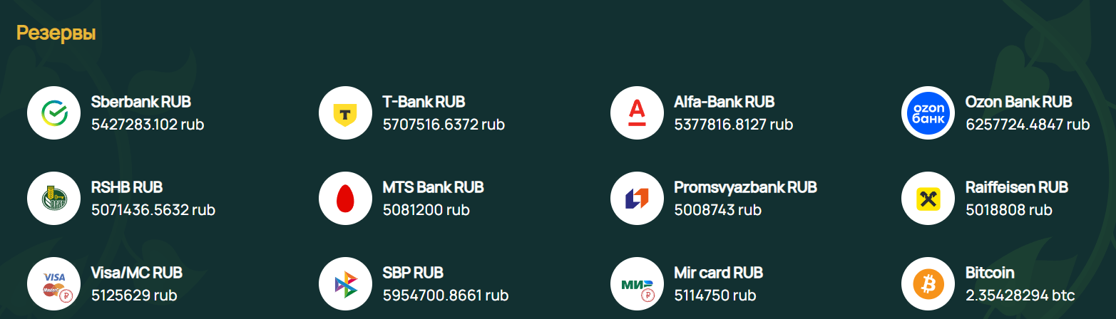 Администраторы площадки Colibri Pay раскрывают информацию о резервах. Они достаточно большие. Например, на балансе «Сбера» по состоянию на 20 февраля 2026 хранится 5 млн руб., «Озон Банка» — 6 млн. Это значит, что клиент сможет обменять крупную сумму одной транзакцией. Регистрация сервиса на мониторинге позволяет рассчитывать, что эти цифры взяты не «с потолка», а проверены модераторами рейтинговой платформы.Поддержка осуществляется только через бота в Телеграм. Отсутствие альтернатив создает риск для клиента. Скорее всего, ему будет сложно получить ответ на свой вопрос.