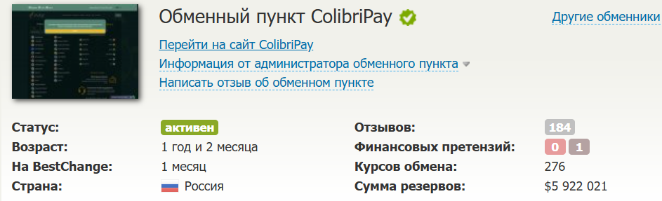 Однако обменник Colibripay зарегистрирован на мониторингах, таких как Bestchange, и имеет там хорошую репутацию. Это очень сильный аргумент в его пользу.