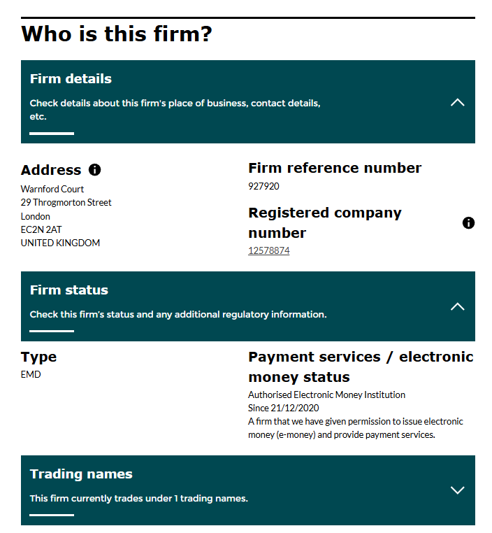 В рамках проекта существует целая группа компаний, одно из главных юридических лиц зарегистрировано в Великобритании и регулируется FCA. Информацию об этом можно найти на сайте, там же указаны реквизиты для проверки лицензии – мы использовали их, чтобы удостовериться в правдивости данных.