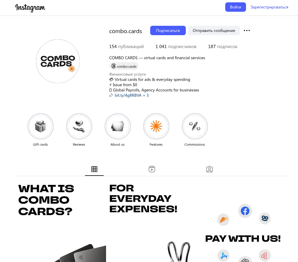 Instagram-страничка combo.cards