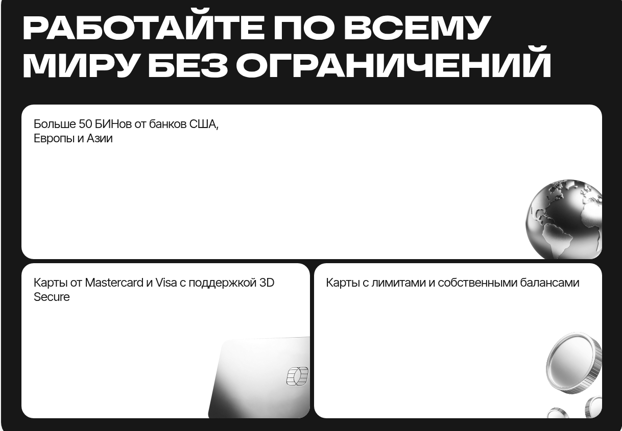 Сервис предлагает удобное оформление виртуальных карт для аффилиатов с фокусом на оплату рекламных услуг. Комиссии низкие, есть инструменты для команд и разграничение доступа, что делает Combocards привлекательным решением для вебмастеров. Но в сети есть много плохих отзывов, в которых указано, что платформа имеет безграмотный саппорт и предлагает невалидные карты.