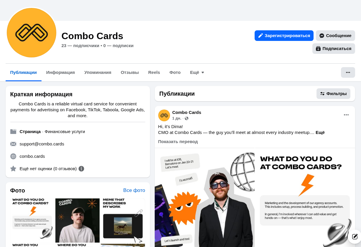 Контент здесь новостной, развлекательный и информационный. Комментарии открыты, но их никто не оставляет. Из лайков доступен только хорошие. В команде Combo Cards явно не хватает SMM-щика…
