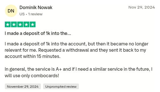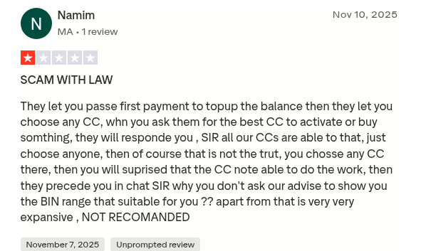 У сервиса Combocards отзывы разные, как и рейтинги. Например, на Trustpilot он имеет всего 2.5 из 5, негативных откликов 62%, положительных — 31%. Пользователи жалуются на неработающие карты, задержки в работе саппорта, глюки платформы. В хороших хвалят надежные бины и дружелюбный интерфейс.