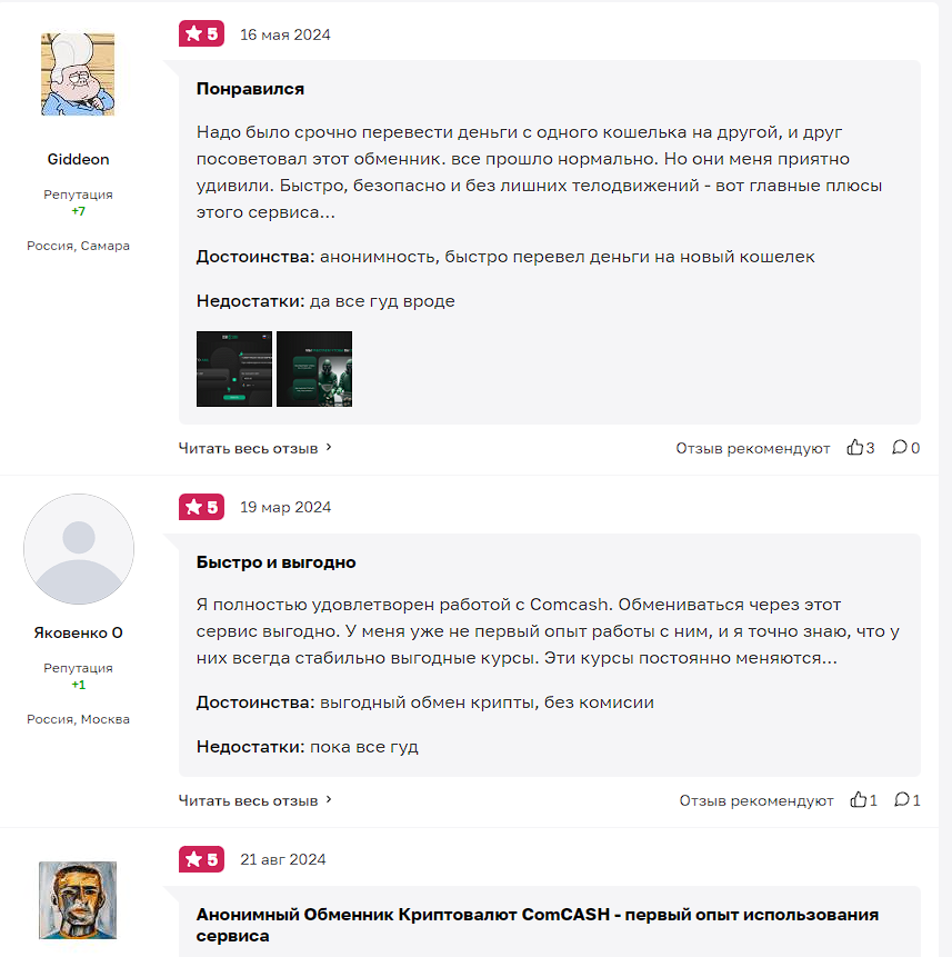 Comcash io, вопреки своей анонимности и прозрачности, имеет много положительных отзывов на многих ресурсах. Однако нам удалось найти некоторые негативные комментарии: