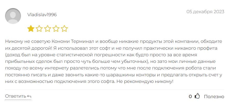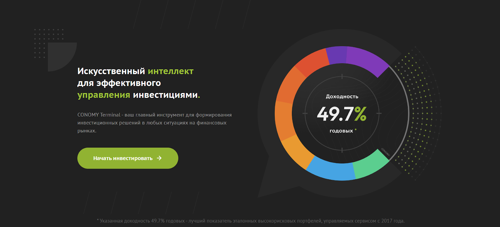 Компания в основном занимается инвестиционными рекомендациями, на бесплатной основе. Кономи терминал является лишь одним из продуктов и не гарантирует 100% доходности от автоматизированного бота.