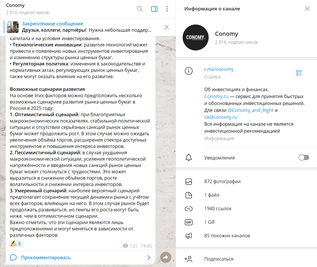 • Conomy – странички в телеграмме, ютубе и вконтакте, под одним названием;