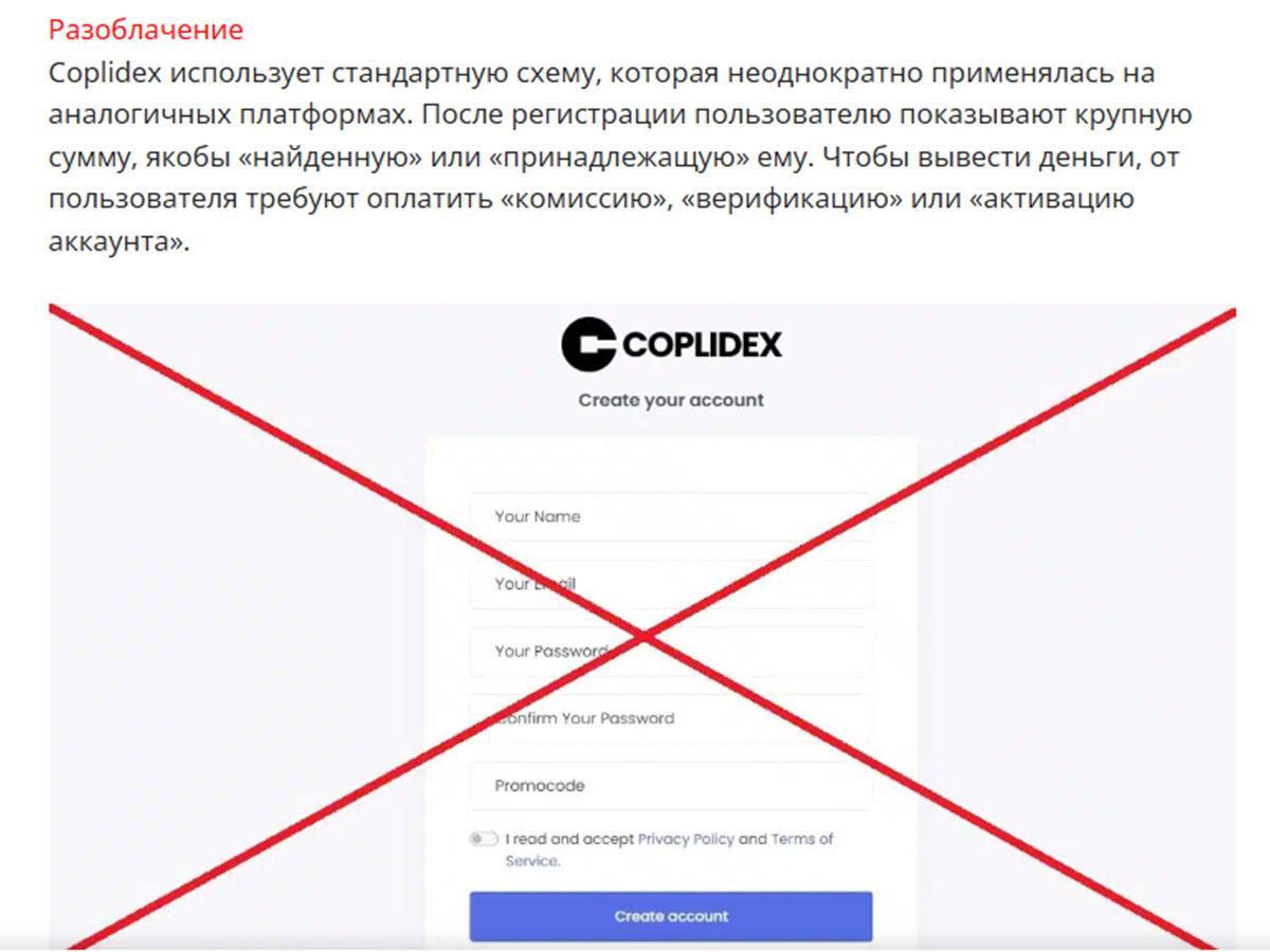 Coplidex com – мошенническая платформа, которой мы категорически не рекомендуем пользоваться. Такой вывод был сделан на основании следующих фактов: