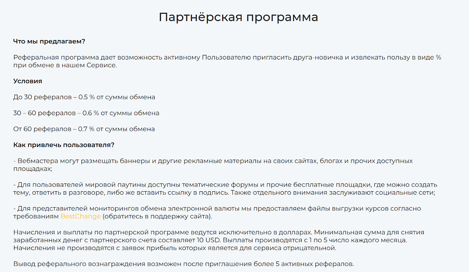 В пользовательском соглашении прописано, что курс может измениться в любой момент без уведомления. Возврат средств после 10-минутного лимита на оплату возможен только через 24 часа с вычетом 2% комиссии. Плюс, если транзакция задерживается из-за низкой комиссии в блокчейне сервис пересчитывает все по худшему курсу и снижает сумму до 1,5% от рыночной. Но на BestChange сервис выглядит с 800+ положительными отзывами без минусов. Это является результатом стимулирования клиентов бонусами или партнеркой с 0,5-0,7% от рефералов.