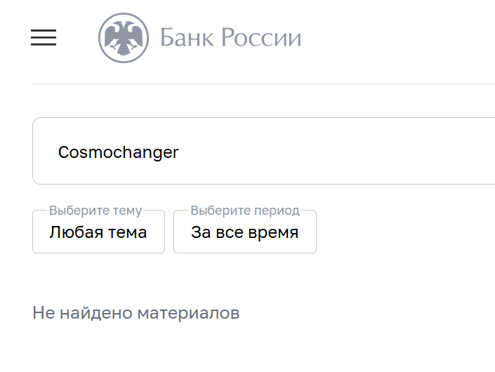 Регулирование CosmoChanger осуществляется нормами финансового надзора, но без привязки к конкретному регулятору. В реестре Центрального Банка РФ обменник не упоминается. Его деятельность на территории РФ является незаконной. Платформа подчиняется требованиям AML и KYC.