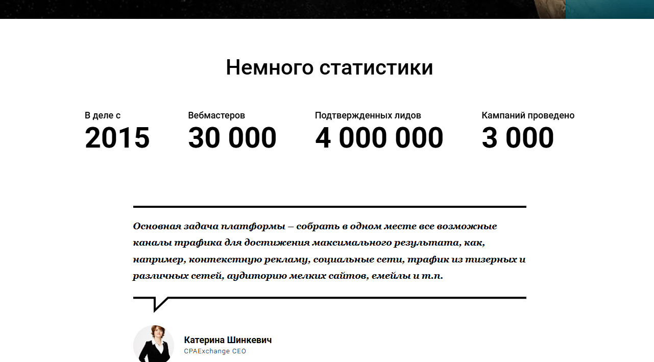 Cpaexchange – не серый, а вполне реальный арбитражный проект с юридическим лицом, офисом и 10-летним опытом. У него есть оператор и публичная команда, что нехарактерно для партнёрских программ-однодневок. То есть, с точки зрения легитимности платформа выглядит убедительно.