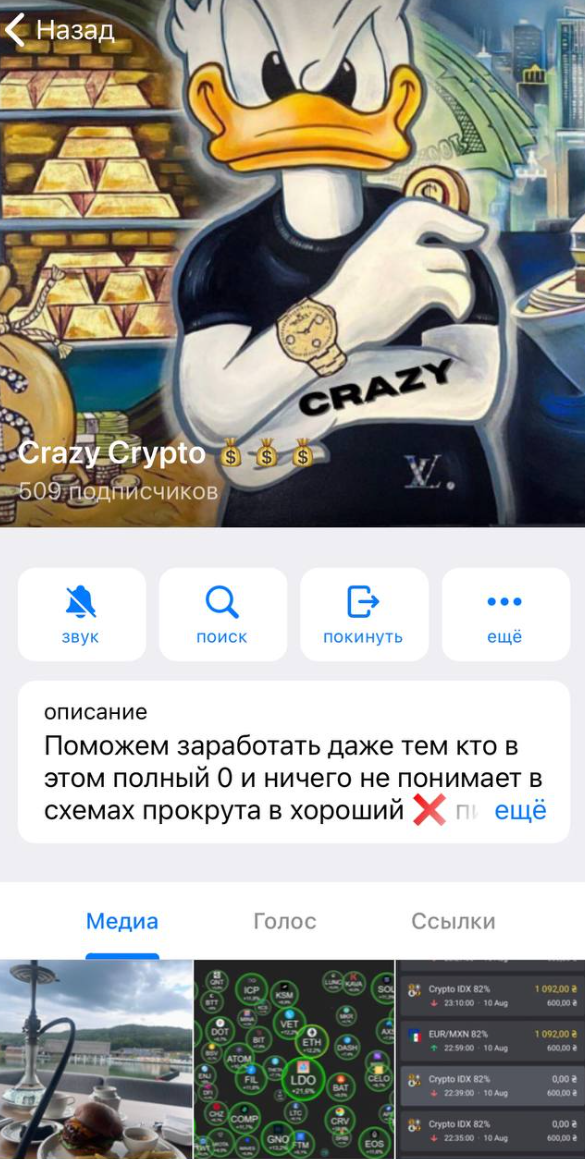Телеграм-канал Crazy Crypto вел якобы успешный криптоарбитражник, который предлагал всем желающим научиться прокручивать крипту для получения прибыли, независимо от текущего курса и состояния рынка. Проверим работу данного автора, чтобы определить, насколько безопасно сотрудничать с ним.