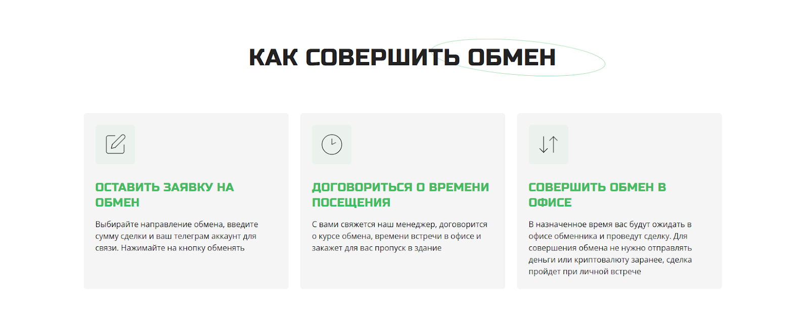 Никакой регистрации на сайте обменника Croco Exchange не требуется, для сделки вам достаточно оставить заявку и указать свой аккаунт в телеграм, чтобы техническая поддержка / менеджер мог договориться о времени и месте сделки. Из информации на сайте, на ваше имя закажут пропуск, поэтому необходимо взять любой подтверждающий документ.