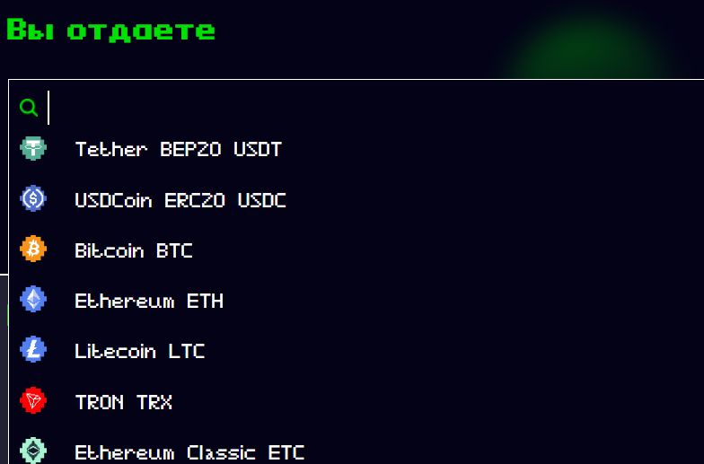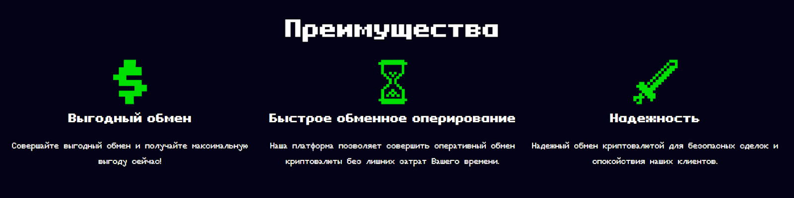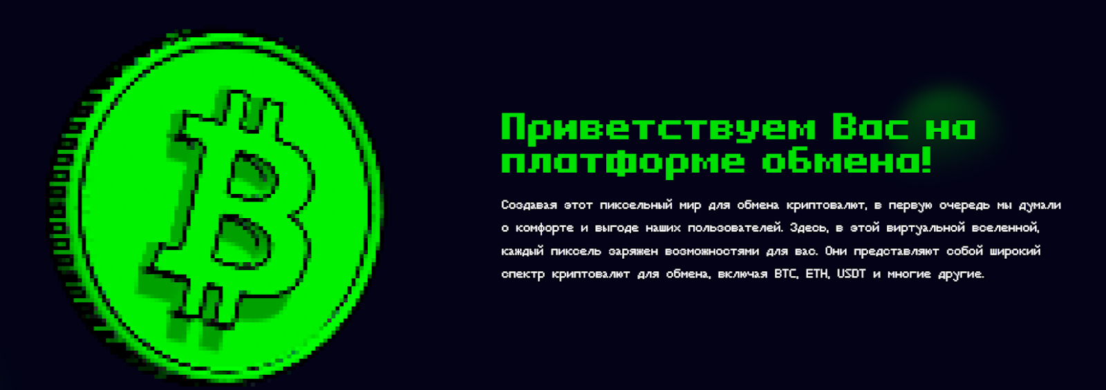 Сайт обменника выполнен в стиле пиксель-арта.