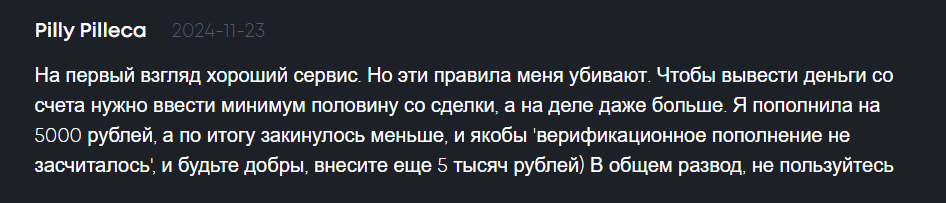 - Отзывы сообщают также о блокировке обмена при переводе со ссылкой на противодействие отмыванию нелегально полученных денег, на блокировку счетов и потерю вложений, а отзывы, говорящие о удачном сотрудничестве подозрительно похоже на накрутку, следовательно, репутация у обменника может быть мошенническая и тот пытается избавиться от нее при помощи накрутки оценок.