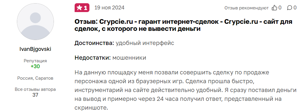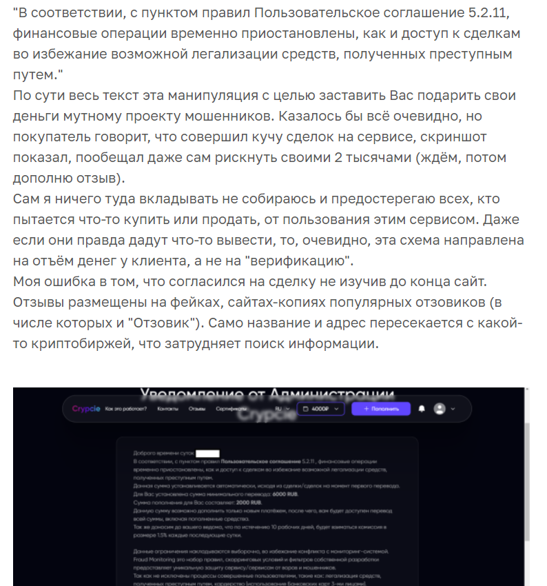 Однако у Crypcie отзывы по большей части все таки негативные. Сообщается о разводе.