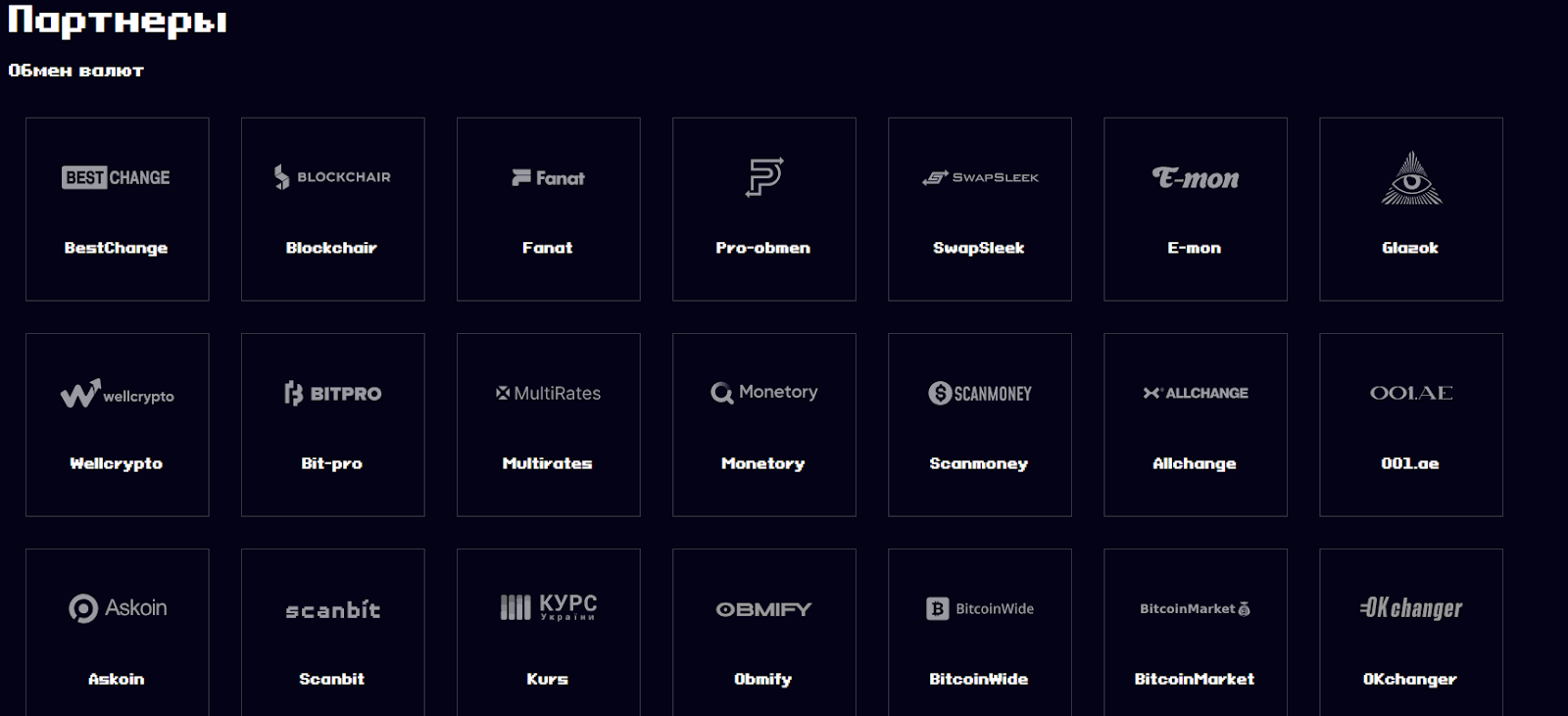 Указывается множество партнеров, сотрудничающих с платформой. Многие из них такие же сервисы обмена крипты.