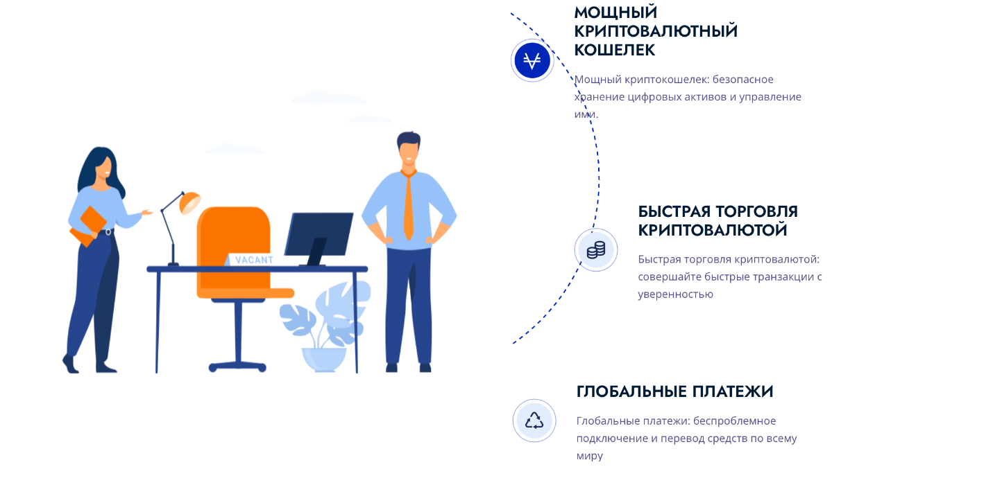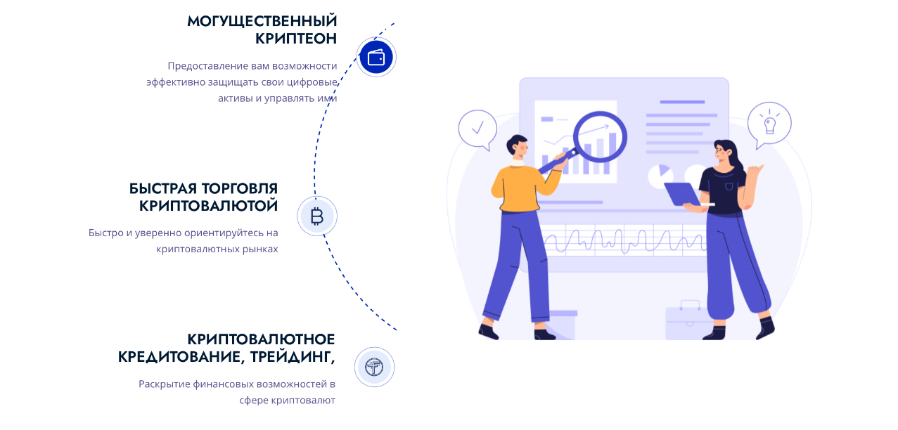 - Возможность торговли и кредита в криптовалюте;