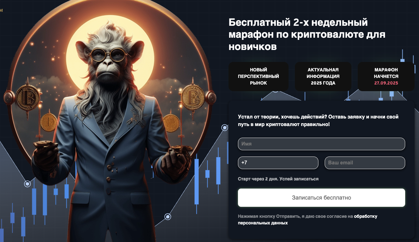 На сайте crypto dream school ru приглашают всех желающих посетить двухнедельный марафон, на котором обещают научить основам обращения с криптовалютами. Заявлено, что участие в нем является бесплатным, а старт потоку будет дан 27 сентября 2025-го года.
