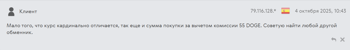 Но есть и недовольные клиенты. Например, один из пользователей утверждает, что обменный курс сильно отличается от рыночного, а комиссия за обмен высокая.