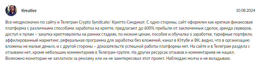 • Большое количество негативных отзывов о cryptosyndicate в сети
