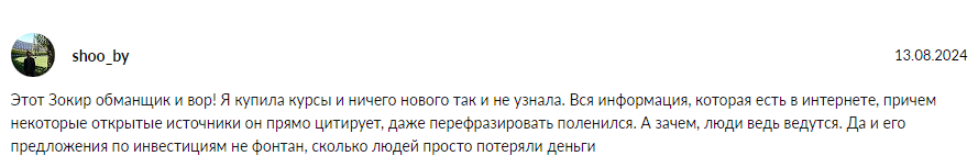 • Основатель мошенник: многие пользователи убеждены, что низкая прозрачность и качество вина создателя проекта, который в бывшем занимался созданием обучающих курсов. Сами курсы обладают низким рейтингом из-за бесполезности, наличия общедоступной информации (иногда прямого копирайта или цитирования)