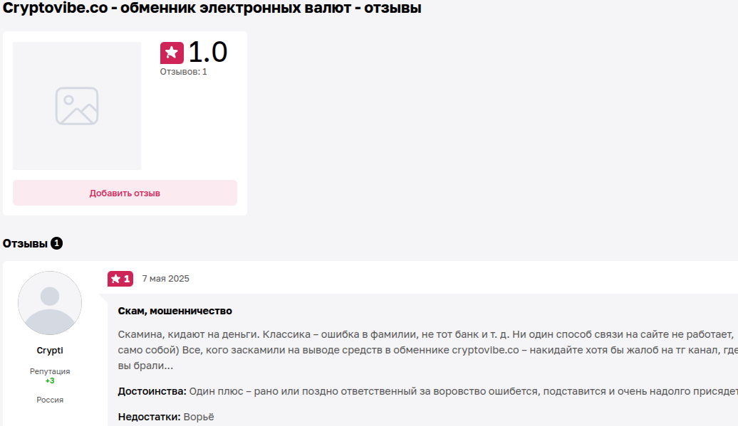 • в отзывах о Crypto Vibe пользователи называют его фальшивым обменником.